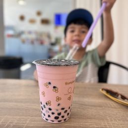 **Rating with a small child** My 5 year old and I like to go around Pasadena and explore boba & dessert places. We always get the taro or strawberry boba, and today we were feeling more strawberry with extra boba! Place is quaint, enough tables, and basic snacks to entice a small child. The staff was very friendly and treated my son with respect (which is very important to me and always something I look for in a business when I'm with my son). We hung out here for a while as we sipped on our boba and watched the trains roll by at the nearby station. The drink was pretty good, and the extra boba made my son really happy. I didn't try their bubble waffle but sounds like something I'll come back for! I also liked how the cafe supports local businesses and lets people advertise their small business on the bulletin board. It's very community-friendly! Thumbs up from us!